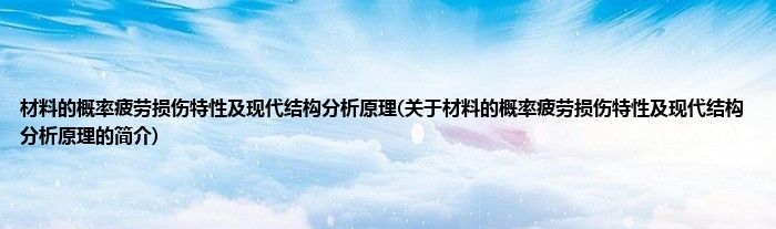 大家好,材料的概率疲劳损伤特性及现代结构分析原理,关于材料的概率疲劳损伤特性及现代结构分析原理的简介很多人还不知道,现在让我们一起来看看吧!