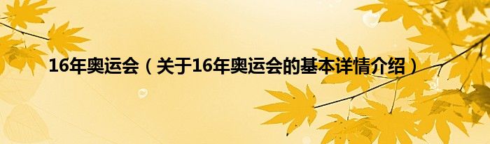 16年奥运会(关于16年奥运会的基本详情介绍)