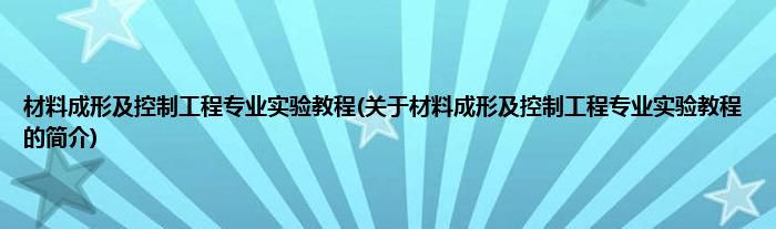 材料成形及控制工程专业实验教程(关于材料成形及控制工程专业实验教程的简介)