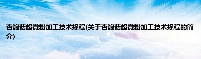 本文关于杏鲍菇超微粉加工技术规程的简介就讲解完毕,希望对大家有所帮助。