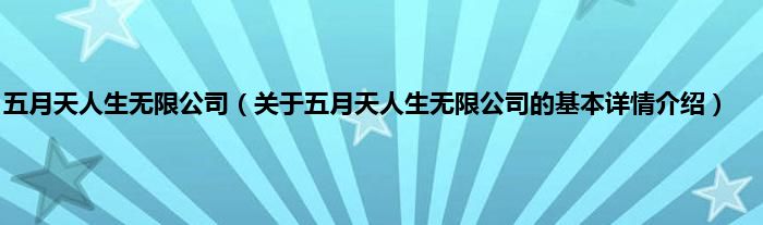 五月天人生无限公司(关于五月天人生无限公司的基本详情介绍)