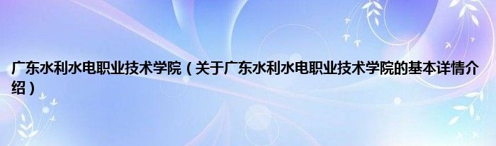 本文关于广东水利水电职业技术学院的基本详情介绍就讲解完毕,希望对大家有所帮助。