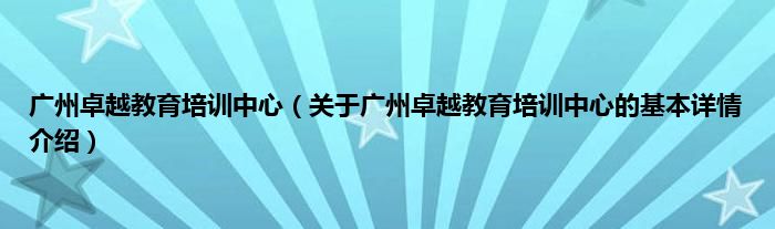 本文关于广州卓越教育培训中心的基本详情介绍就讲解完毕,希望对大家有所帮助。
