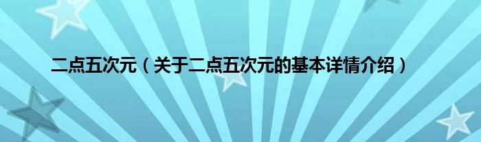 本文关于二点五次元的基本详情介绍就讲解完毕,希望对大家有所帮助。
