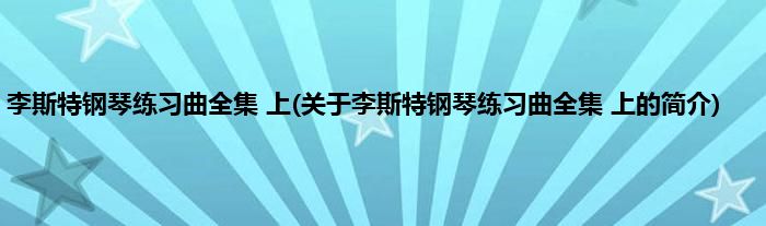 大家好,李斯特钢琴练习曲全集。上,关于李斯特钢琴练习曲全集。上的简介很多人还不知道,现在让我们一起来看看吧!