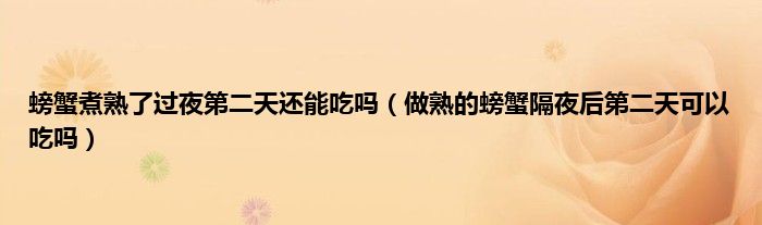 大家好,小科来为大家解答以上问题。螃蟹煮熟了过夜第二天还能吃吗,做熟的螃蟹隔夜后第二天可以吃吗很多人还不知道,现在让我们一起来看看吧!
