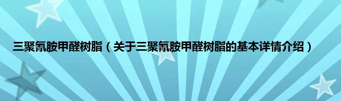 三聚氰胺甲醛树脂(关于三聚氰胺甲醛树脂的基本详情介绍)