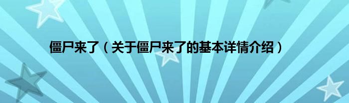 大家好我是小蝌蚪,僵尸来了,关于僵尸来了的基本详情介绍很多人还不知道,那么现在让我们一起来看看吧!