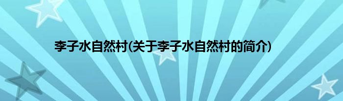 本文关于李子水自然村的简介就讲解完毕,希望对大家有所帮助。