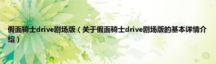 本文关于假面骑士drive剧场版的基本详情介绍就讲解完毕,希望对大家有所帮助。