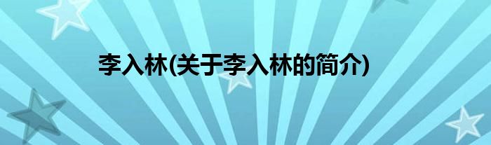 本文关于李入林的简介就讲解完毕,希望对大家有所帮助。