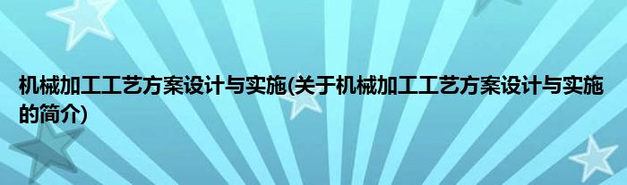 大家好,机械加工工艺方案设计与实施,关于机械加工工艺方案设计与实施的简介很多人还不知道,现在让我们一起来看看吧!