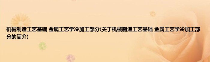 机械制造工艺基础 金属工艺学冷加工部分(关于机械制造工艺基础 金属工艺学冷加工部分的简介)