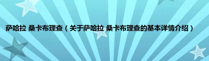 本文关于萨哈拉 桑卡布理查的基本详情介绍就讲解完毕,希望对大家有所帮助。
