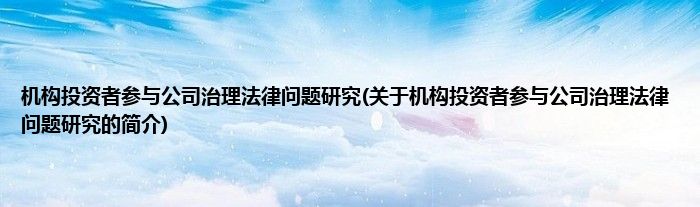 大家好,机构投资者参与公司治理法律问题研究,关于机构投资者参与公司治理法律问题研究的简介很多人还不知道,现在让我们一起来看看吧!