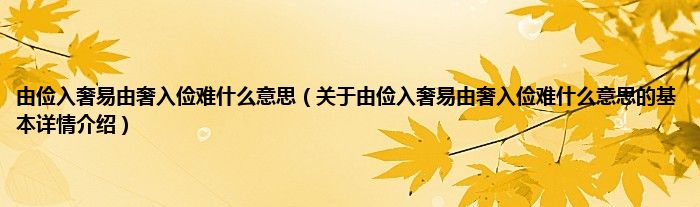 本文关于由俭入奢易由奢入俭难什么意思的基本详情介绍就讲解完毕,希望对大家有所帮助。