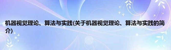 大家好,机器视觉理论、算法与实践,关于机器视觉理论、算法与实践的简介很多人还不知道,现在让我们一起来看看吧!