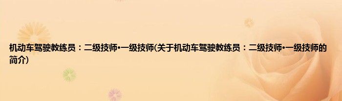 大家好,机动车驾驶教练员:二级技师·一级技师,关于机动车驾驶教练员:二级技师·一级技师的简介很多人还不知道,现在让我们一起来看看吧!