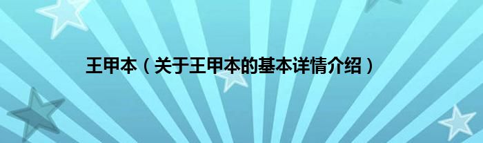 本文关于王甲本的基本详情介绍就讲解完毕,希望对大家有所帮助。
