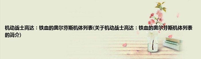 机动战士高达:铁血的奥尔芬斯机体列表(关于机动战士高达:铁血的奥尔芬斯机体列表的简介)