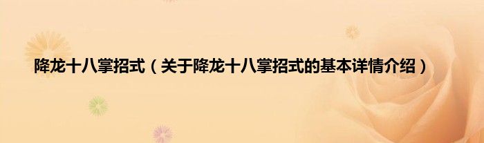 本文关于降龙十八掌招式的基本详情介绍就讲解完毕,希望对大家有所帮助。