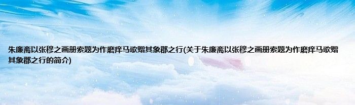 本文关于朱廉斋以张穆之画册索题为作磨痒马歌赠其象郡之行的简介就讲解完毕,希望对大家有所帮助。