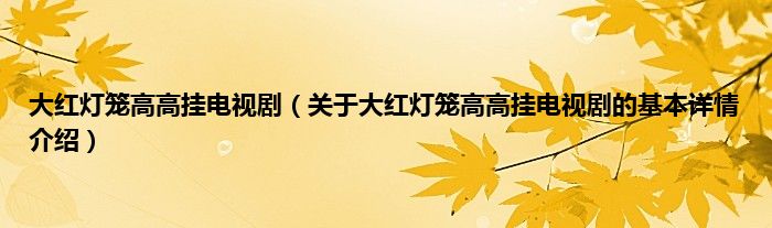本文关于大红灯笼高高挂电视剧的基本详情介绍就讲解完毕,希望对大家有所帮助。