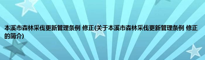 大家好,本溪市森林采伐更新管理条例 修正,关于本溪市森林采伐更新管理条例 修正的简介很多人还不知道,现在让我们一起来看看吧!