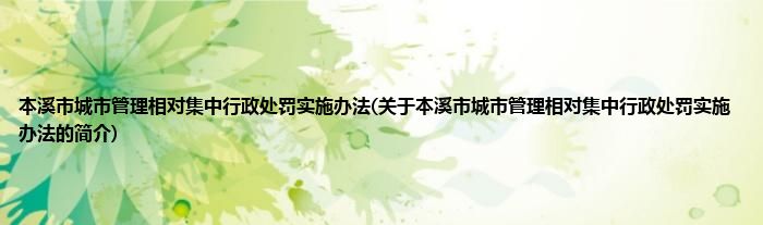 本溪市城市管理相对集中行政处罚实施办法(关于本溪市城市管理相对集中行政处罚实施办法的简介)