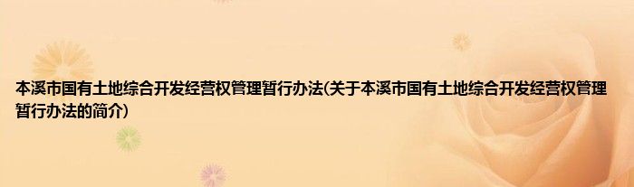 本溪市国有土地综合开发经营权管理暂行办法(关于本溪市国有土地综合开发经营权管理暂行办法的简介)