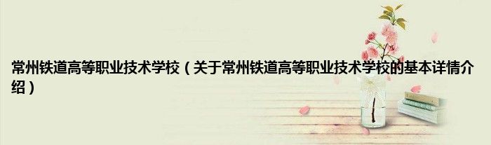 本文关于常州铁道高等职业技术学校的基本详情介绍就讲解完毕,希望对大家有所帮助。