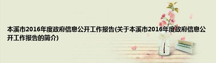 本溪市2016年度政府信息公开工作报告(关于本溪市2016年度政府信息公开工作报告的简介)