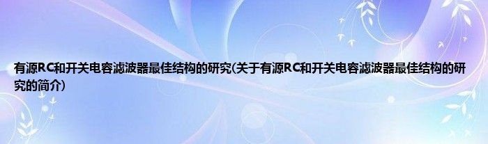 有源RC和开关电容滤波器最佳结构的研究(关于有源RC和开关电容滤波器最佳结构的研究的简介)