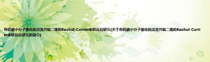 本文关于有机膦小分子催化的活泼共轭二烯的Rauhut-Currier串联反应研究的简介就讲解完毕,希望对大家有所帮助。