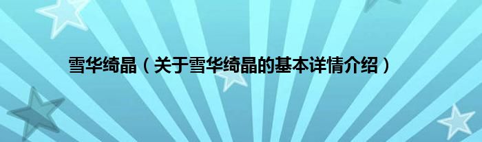 本文关于雪华绮晶的基本详情介绍就讲解完毕,希望对大家有所帮助。