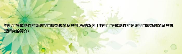 有机半导体器件的场调控自旋新现象及其机理研究(关于有机半导体器件的场调控自旋新现象及其机理研究的简介)
