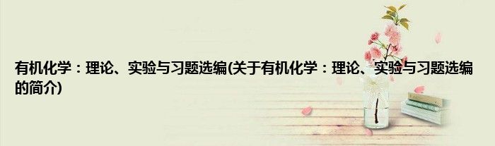 本文关于有机化学:理论、实验与习题选编的简介就讲解完毕,希望对大家有所帮助。