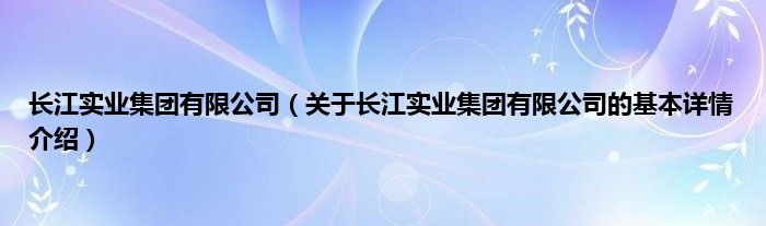 本文关于长江实业集团有限公司的基本详情介绍就讲解完毕,希望对大家有所帮助。