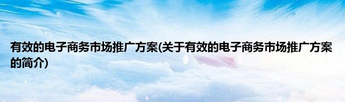 有效的电子商务市场推广方案(关于有效的电子商务市场推广方案的简介)