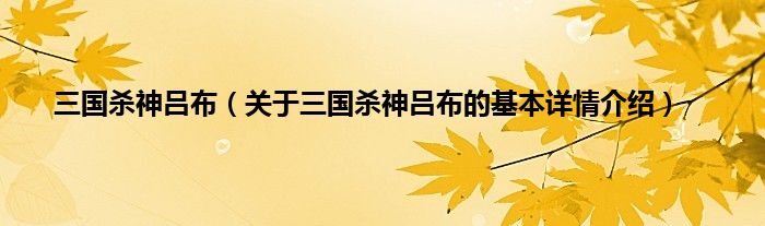 本文关于三国杀神吕布的基本详情介绍就讲解完毕,希望对大家有所帮助。