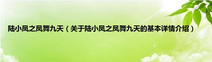 本文关于陆小凤之凤舞九天的基本详情介绍就讲解完毕,希望对大家有所帮助。