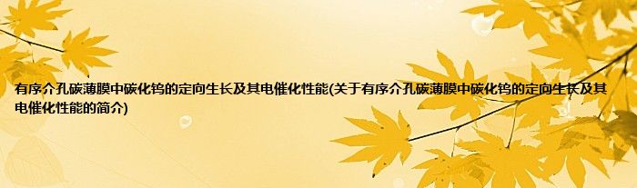 本文关于有序介孔碳薄膜中碳化钨的定向生长及其电催化性能的简介就讲解完毕,希望对大家有所帮助。