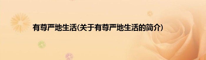 本文关于有尊严地生活的简介就讲解完毕,希望对大家有所帮助。