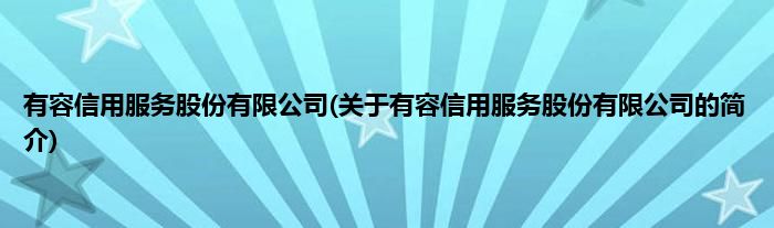 大家好,有容信用服务股份有限公司,关于有容信用服务股份有限公司的简介很多人还不知道,现在让我们一起来看看吧!