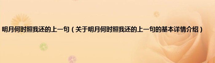 本文关于明月何时照我还的上一句的基本详情介绍就讲解完毕,希望对大家有所帮助。