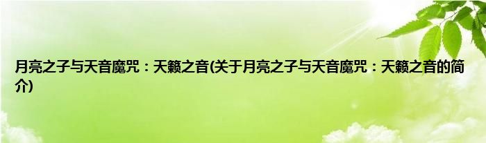 本文关于月亮之子与天音魔咒:天籁之音的简介就讲解完毕,希望对大家有所帮助。