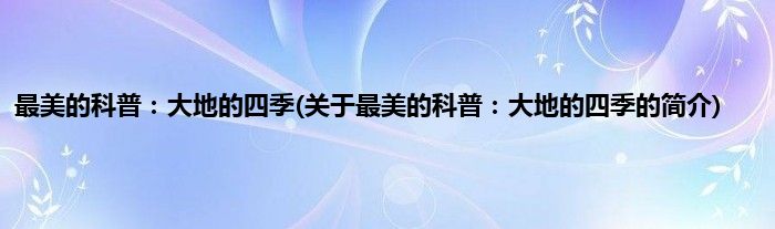 本文关于最美的科普:大地的四季的简介就讲解完毕,希望对大家有所帮助。