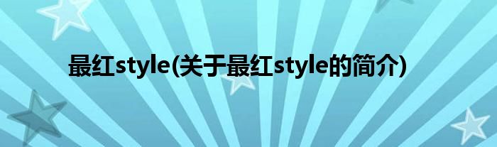 大家好,最红style,关于最红style的简介很多人还不知道,现在让我们一起来看看吧!