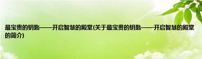 本文关于最宝贵的钥匙——开启智慧的殿堂的简介就讲解完毕,希望对大家有所帮助。