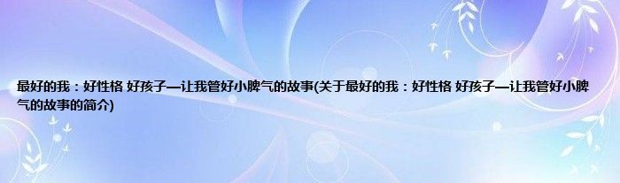 大家好,最好的我:好性格,好孩子—让我管好小脾气的故事,关于最好的我:好性格,好孩子—让我管好小脾气的故事的简介很多人还不知道,现在让我们一起来看看吧!
